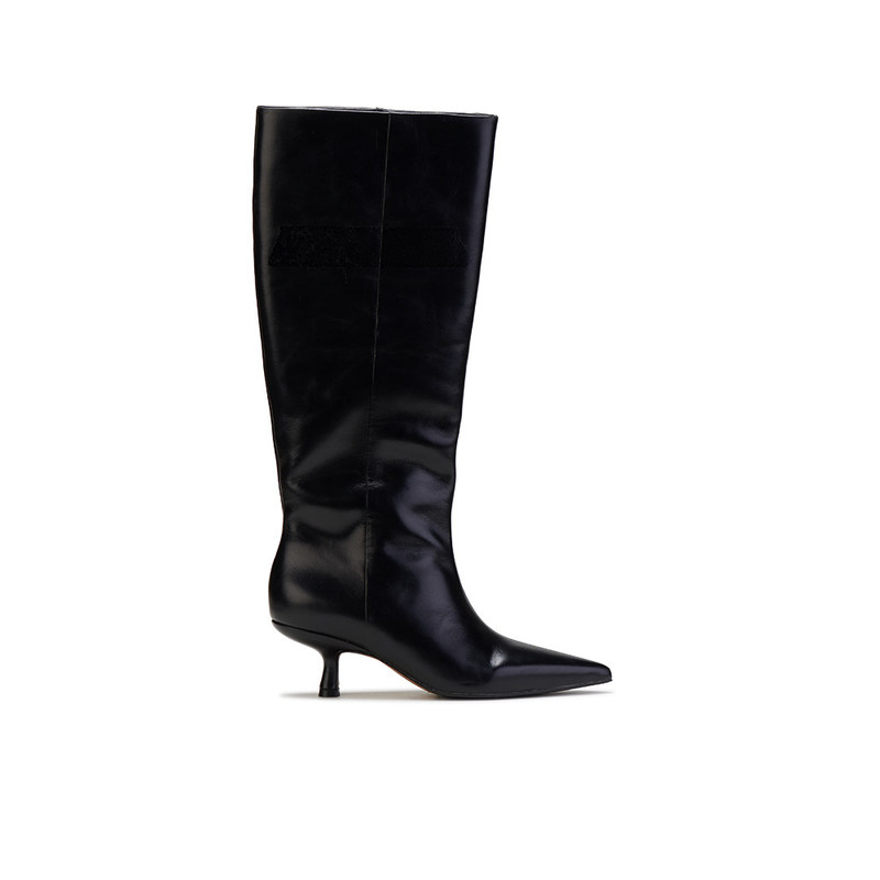 Piernas de cuero negro con punta de rodilla y tacones de estilo moderno