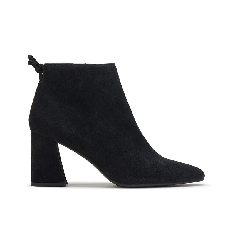 Piernas puntiagudas con tacones gruesos y botas de corte alto.