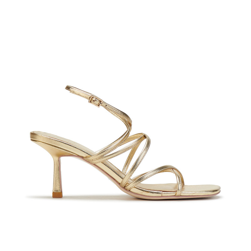 Mujeres con punta negra en el dedo del pie Slip-On Stiletto Talón de goma suela exterior correa Sandalias del mercado de trabajo