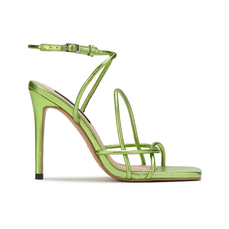 Mujeres fuera de la primavera de la menta pie cuadrado deslizamiento en el talón de estiletto suela exterior de goma correa de sandalias del mercado de trabajo